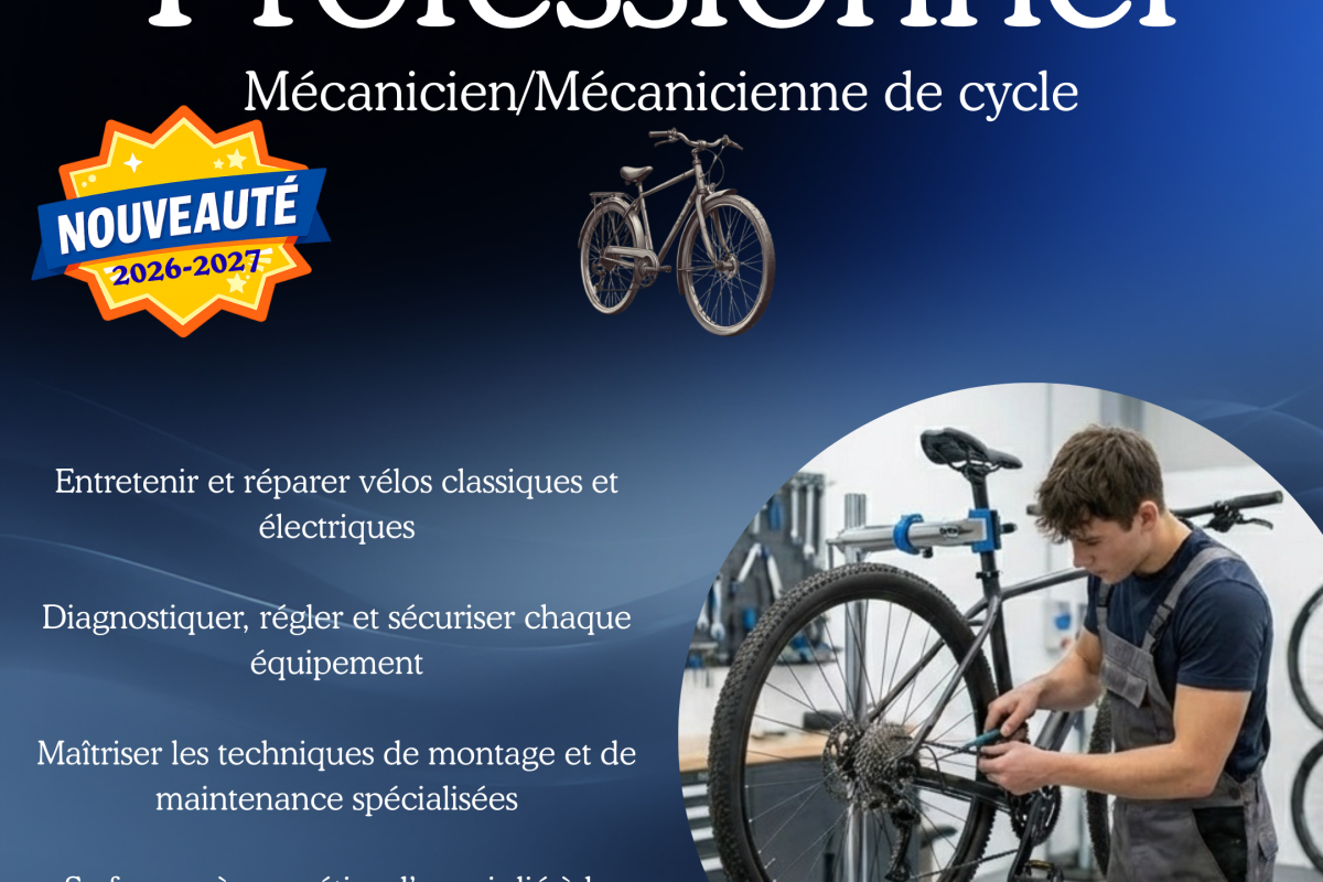 Nous sommes ravis de vous annoncer l’ouverture, dès la rentrée prochaine, de notre toute nouvelle option 𝐌𝐞𝐜𝐚𝐧𝐢𝐜𝐢𝐞𝐧·𝐧𝐞 𝐝𝐞 𝐜𝐲𝐜𝐥𝐞 !